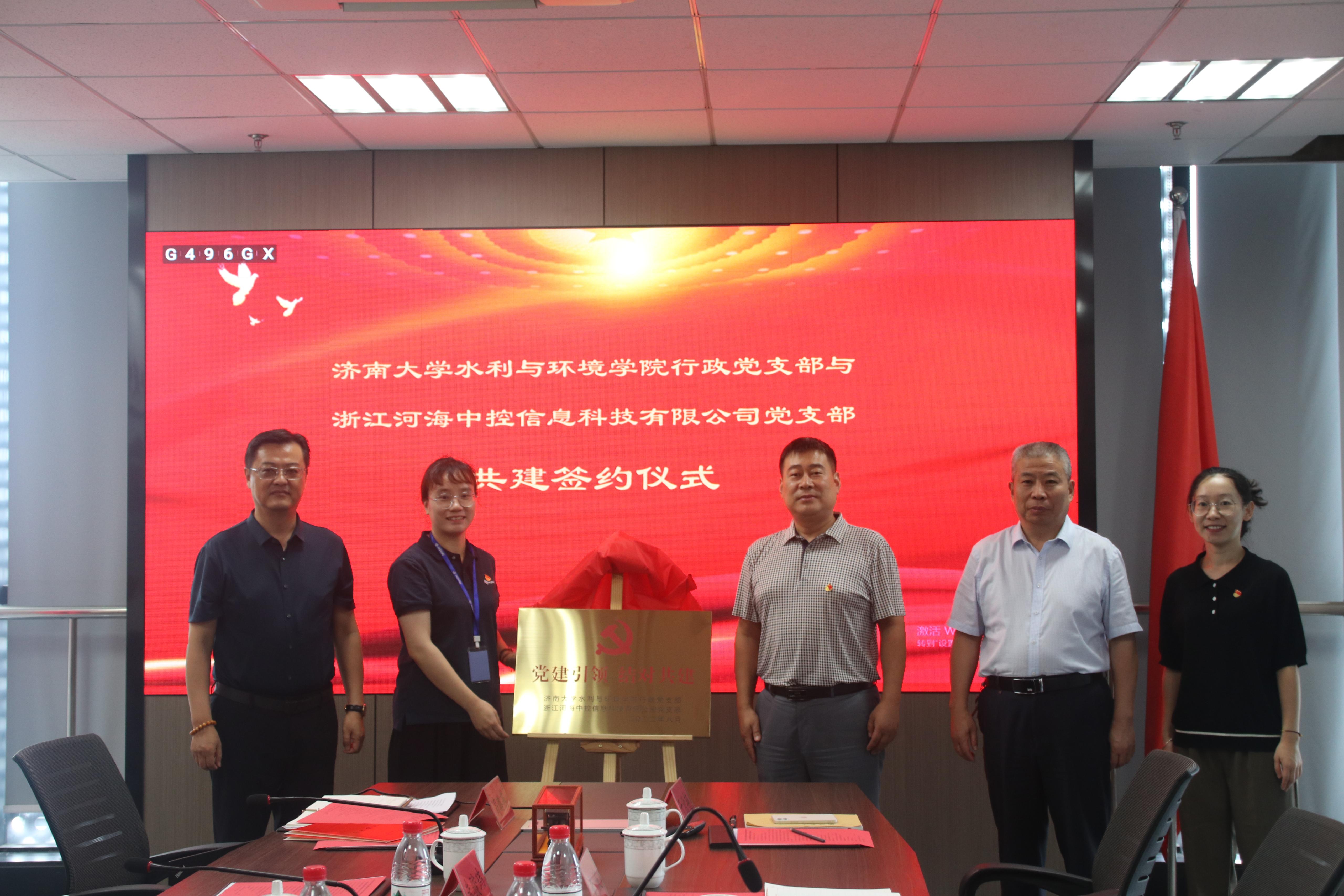 8月17日上午,米优app官方下载安装党委书记王义、院长徐征和及有关教师一行5人赴浙江河海中控信息科技有限公司开展合作共建活动,双方举行了“优米娱乐有限公司地址电话号码水安全研究院”揭牌暨党支部共建仪式。浙江河海中控信息科技有限公司董事长朱骏玮、总经办主任徐彬、党支部书记高璐燕等出席仪式。浙江省嘉兴市政协副主席、九三学社嘉兴市委会主委俞红平,浙江红船干部学院副院长、嘉兴市委党校副校长柴海生,九三学社嘉兴市委会专职副主委迮育彬等应邀出席活动。