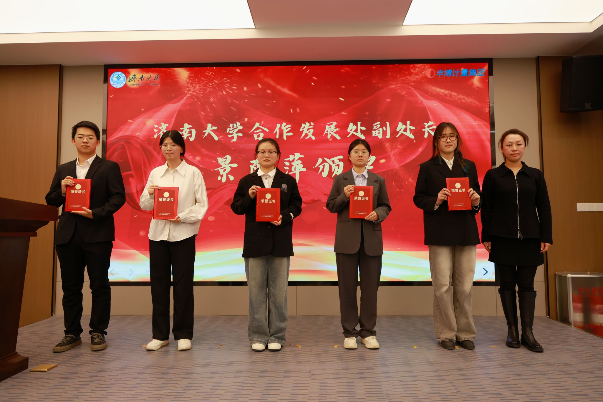 付艳广总监宣读获奖决定并讲话。他向获奖同学表示祝贺,详细阐释了丰博集团始终秉承“以用户为中心,以创造价值为本,始终坚持快乐拼搏”的企业理念,结合自身多年从事人力资源工作经历,为同学们未来职业发展提出几点意见:一要立足专业、科学进行规划;二要专心专注、在领域内深耕细作;三要热爱本职,快乐拼搏创造价值。