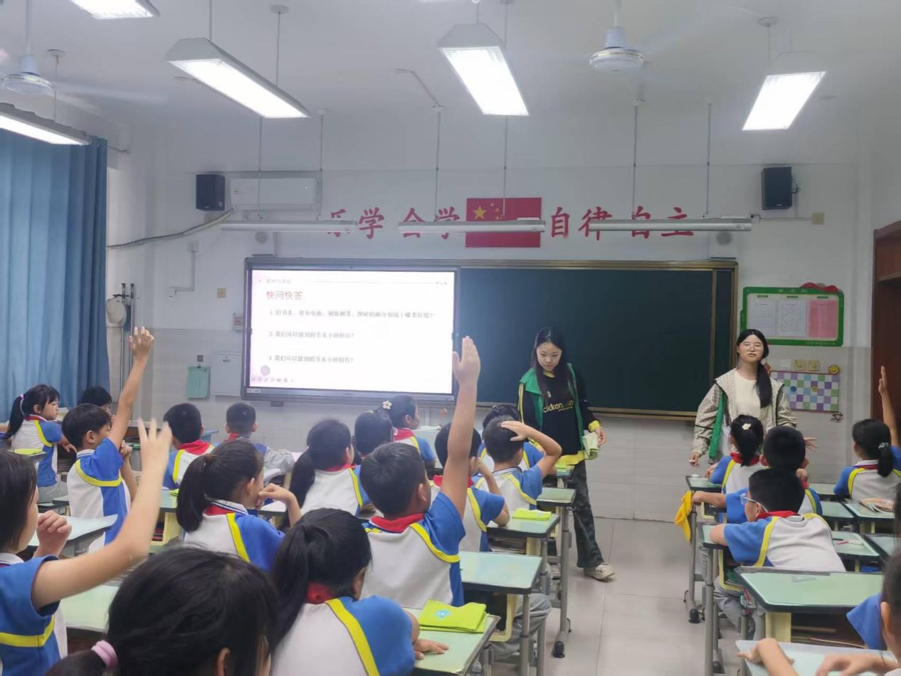 “环保不是一个人的事,是校园、家庭、社区共同的事!”课程最后,宣讲团给出“行动指南”:在学校要护草捡垃圾、关投影仪节电;在家里帮爸妈节水浇花、拔电器插头;在社区画环保海报、参与植树。不少同学当场表示,要回家和爸妈一起践行“绿色出行”,还要把节水妙招告诉邻居。